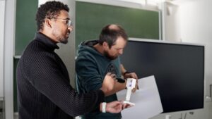 With guidance from the researchers, the kids calculated how much a particle grows during synthesis and used a simulation tool developed by Dr. Lukas Pflug to understand the relationship between particle size and color. Afterwards, they synthesized nanoparticles themselves using a reactor designed by Nabi Traoré, allowing them to compare their experimental results with their predictions.